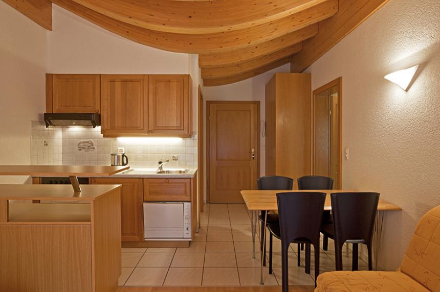 Tutti i nostri appartamenti hanno un balcone con una bella vista verso sud sull’entrata del paese e sulle montagne. Ogni appartamento è arredato con un grande tavolo per i pasti e da due divani che permettono di dormire comodamente sino a tre persone .Troverete sempre, alle Naturelles, un appartamnto che si adatti ai vostri bisogni ed al vostro budget.